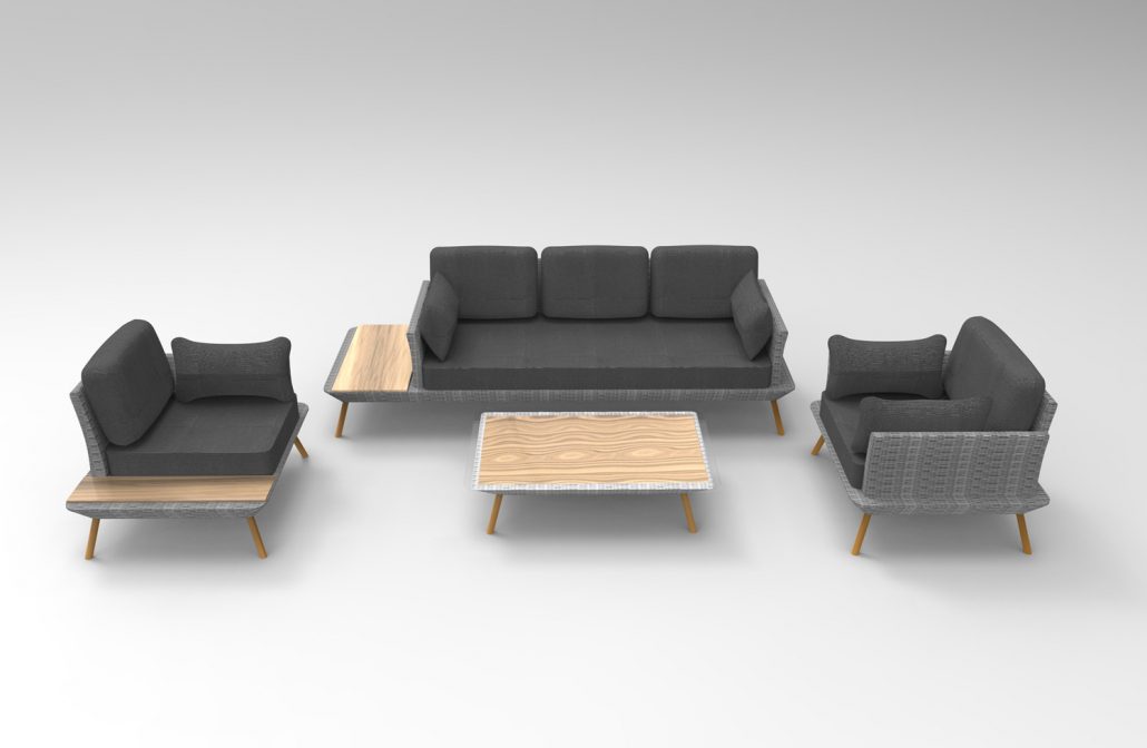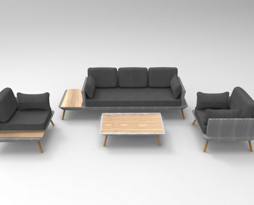 This stylish garden furniture set “Roma” in made up of a 3-seater sofa, a corner armchair and an armchair.