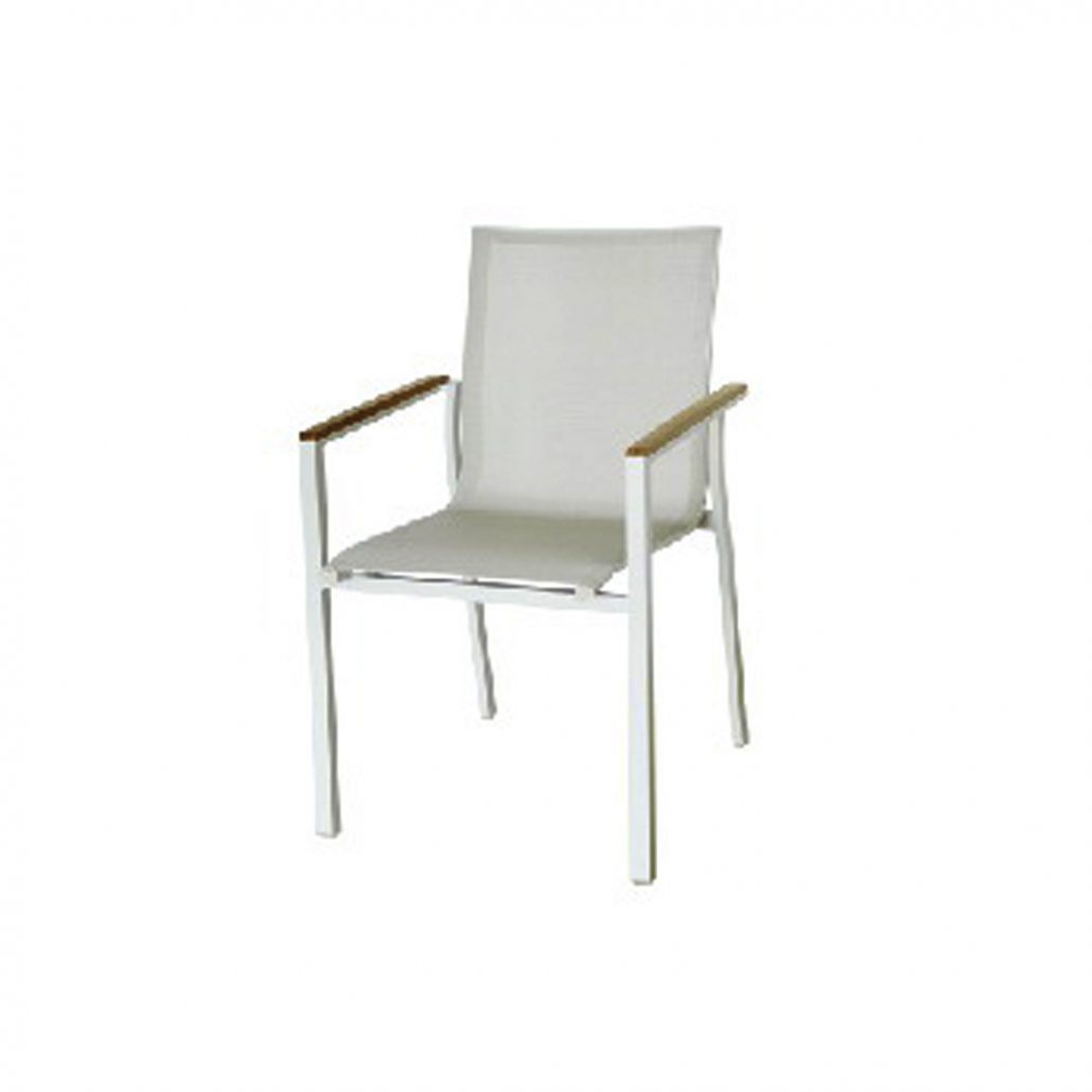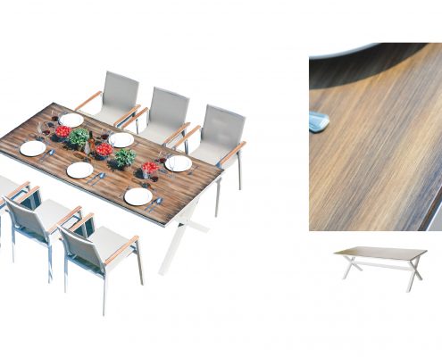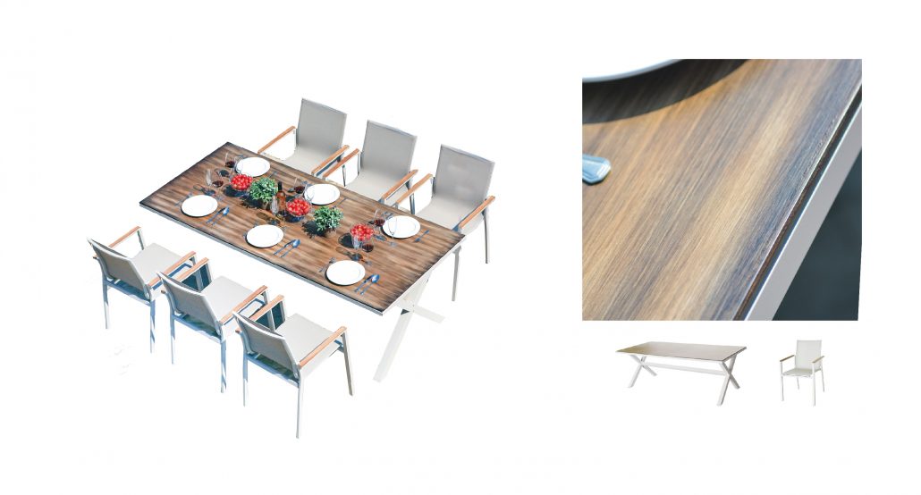 • Aluminium frame with textilene seating and teak tabletop