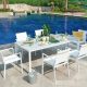 This dining set is smart and is made up of a combination of materials comprising of aluminium, textilene and teak.  It is perfect for lunch and dinner parties in the summer with family and friends.
