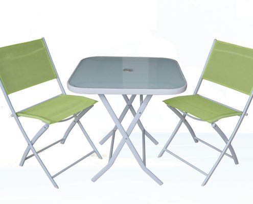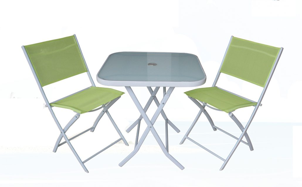 This delightful balcony set is made of the modern fabric textilene with a steel frame and is