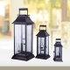 This lantern comes in 3 sizes with black a black metal frame and transparent glass.
