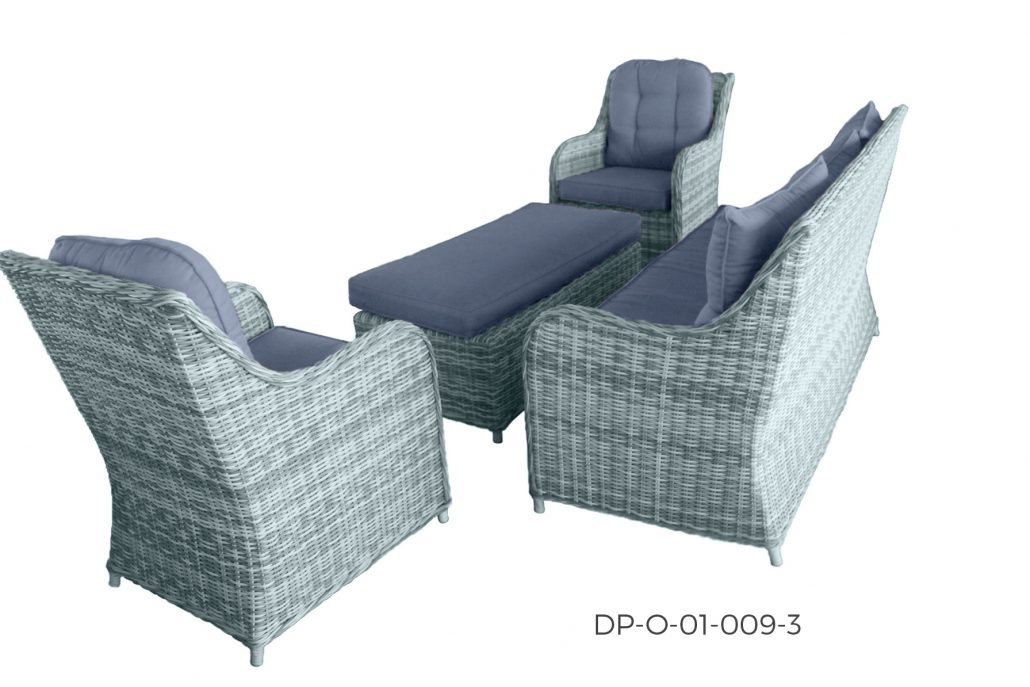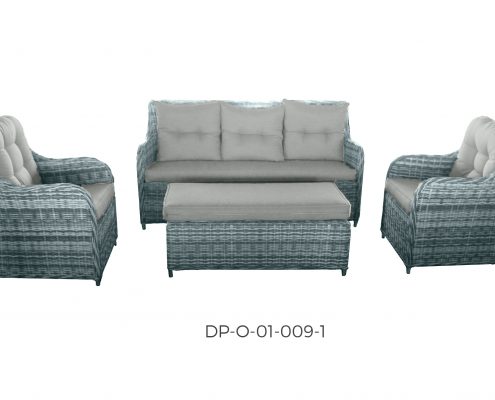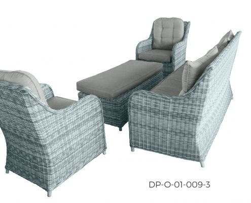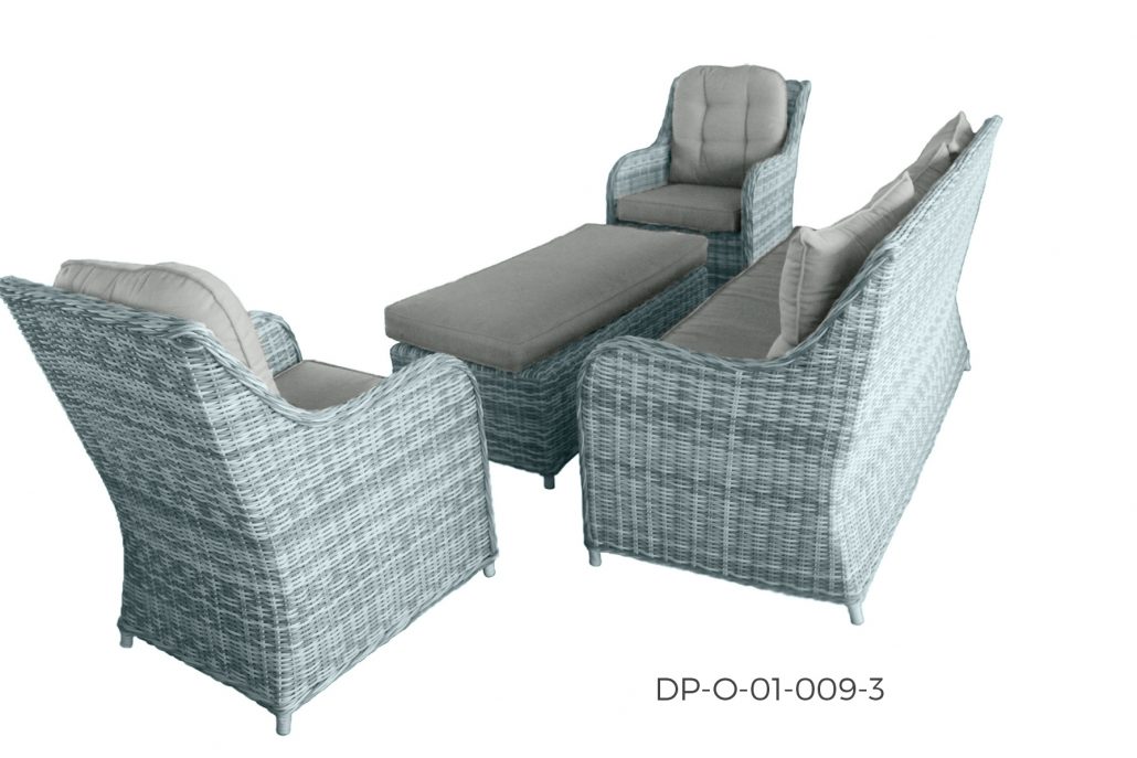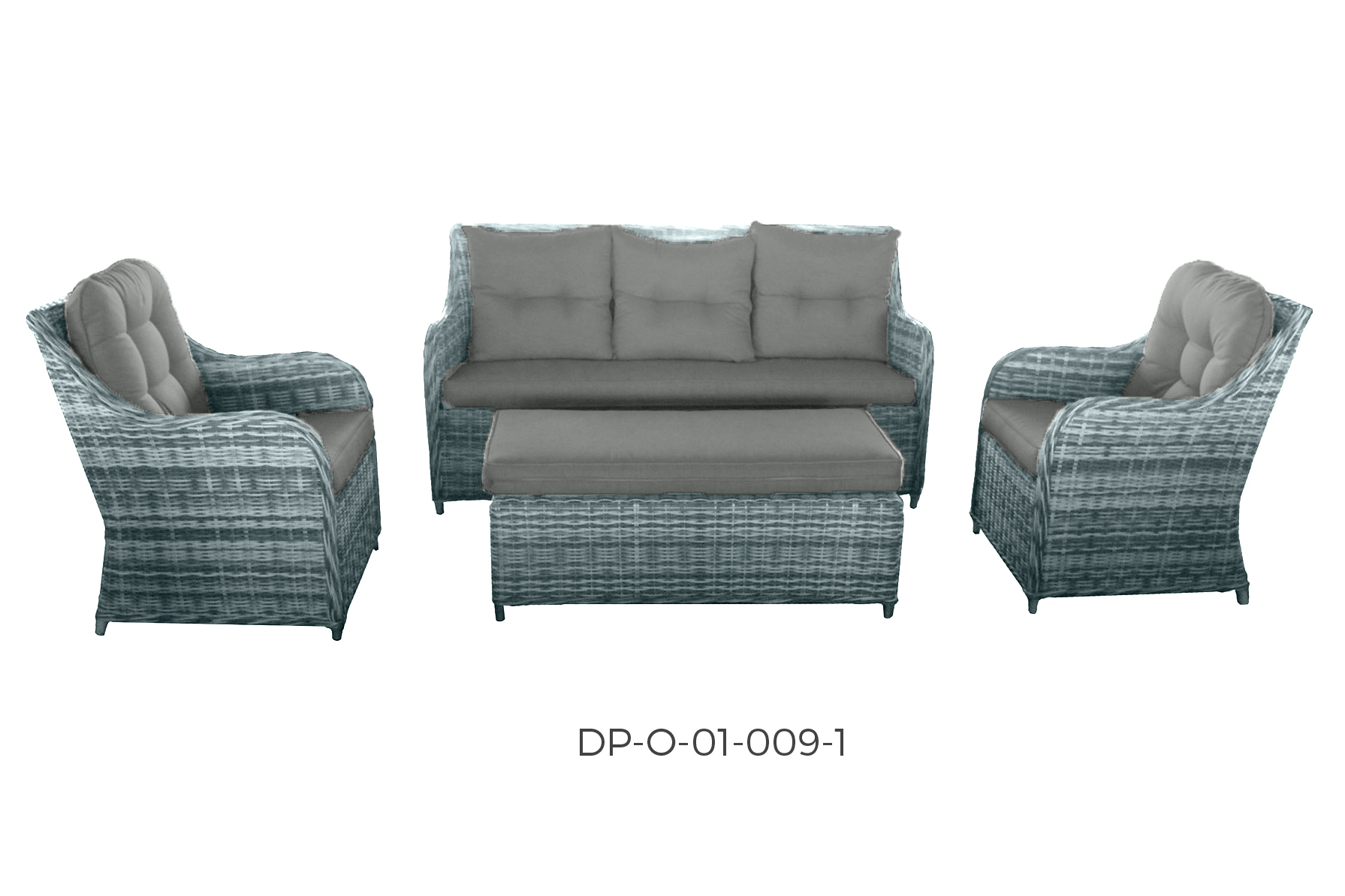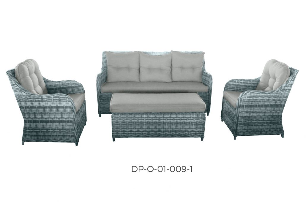 • 4 pieces – 1 three-seater sofa, 2 armchairs, 1 stool