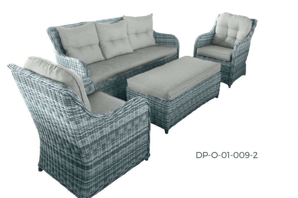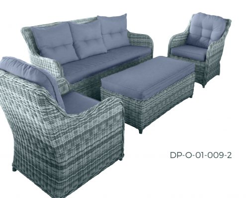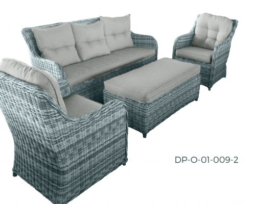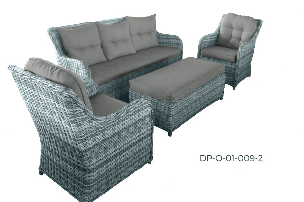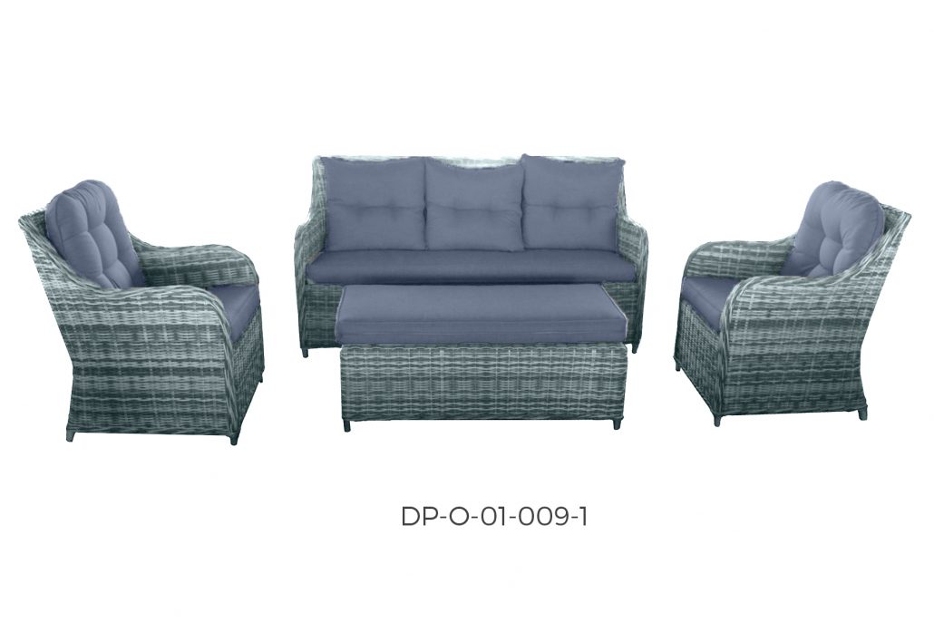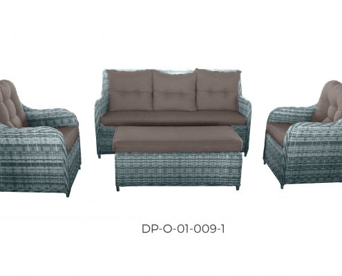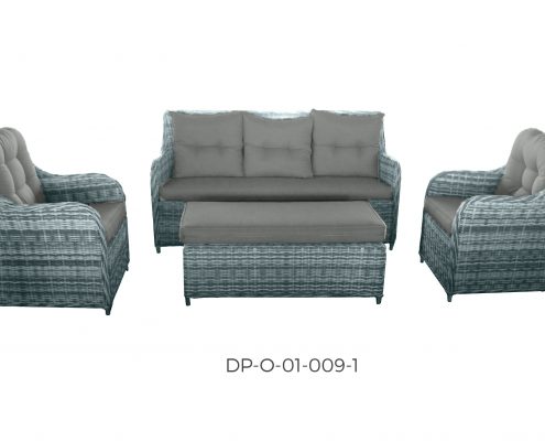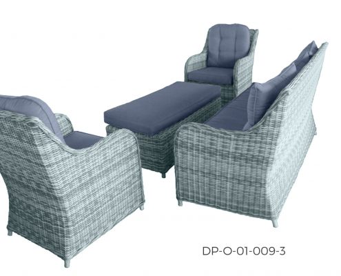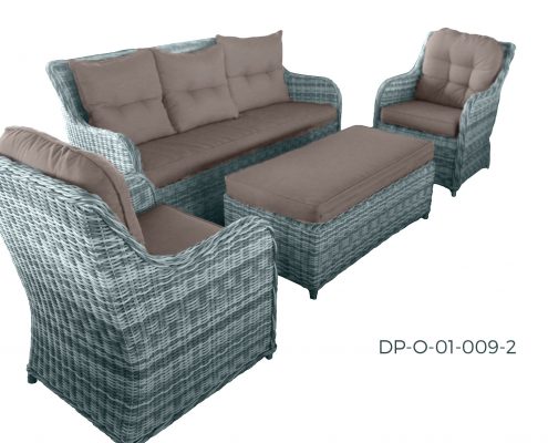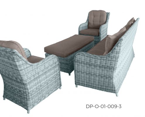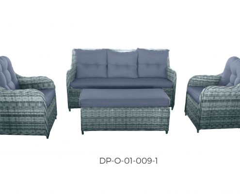 • 4 pieces – 1 three-seater sofa, 2 armchairs, 1 stool