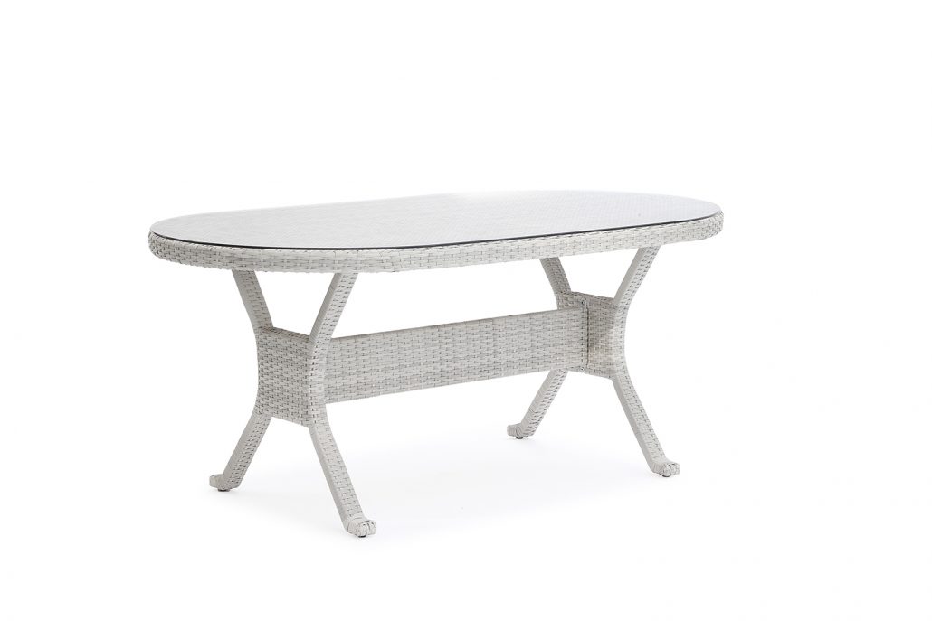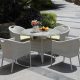 This smart and fashionable polyrattan set in a light weave is ideal for outdoor dining.