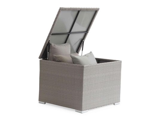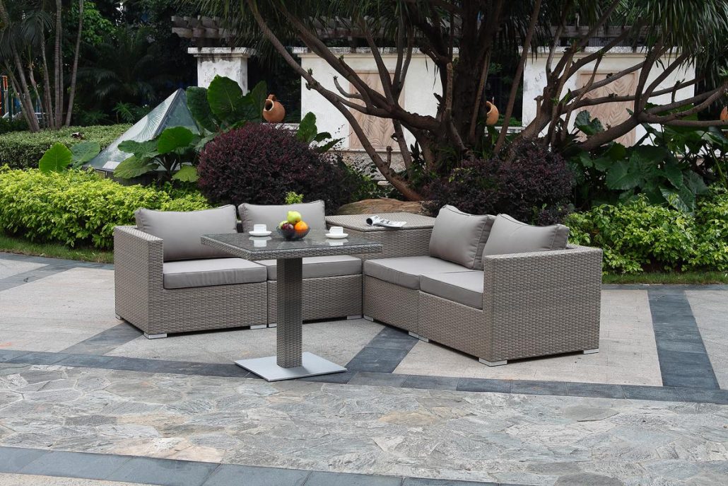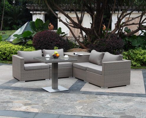 This elegant outdoor dining set is very comfortable and has its own cushioning box integrated, which makes this dining set very special.