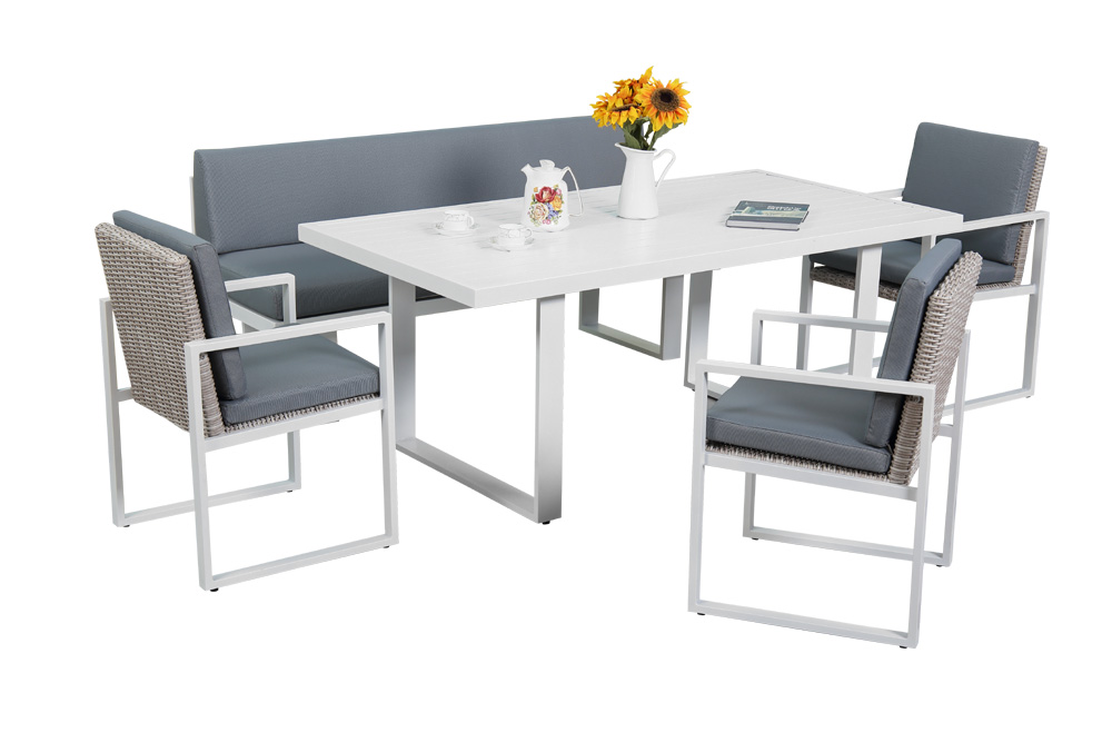 - 5 pieces – rectangular table, 3 chairs and 1 bench
