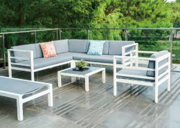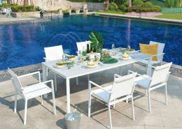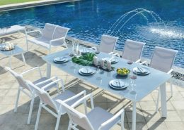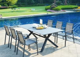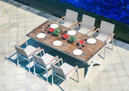 This includes steel, aluminium, teak, rope, polyrattan, glass and showerproof cushioning. This furniture is designed for easy, relaxed and comfortable Outdoor Living.