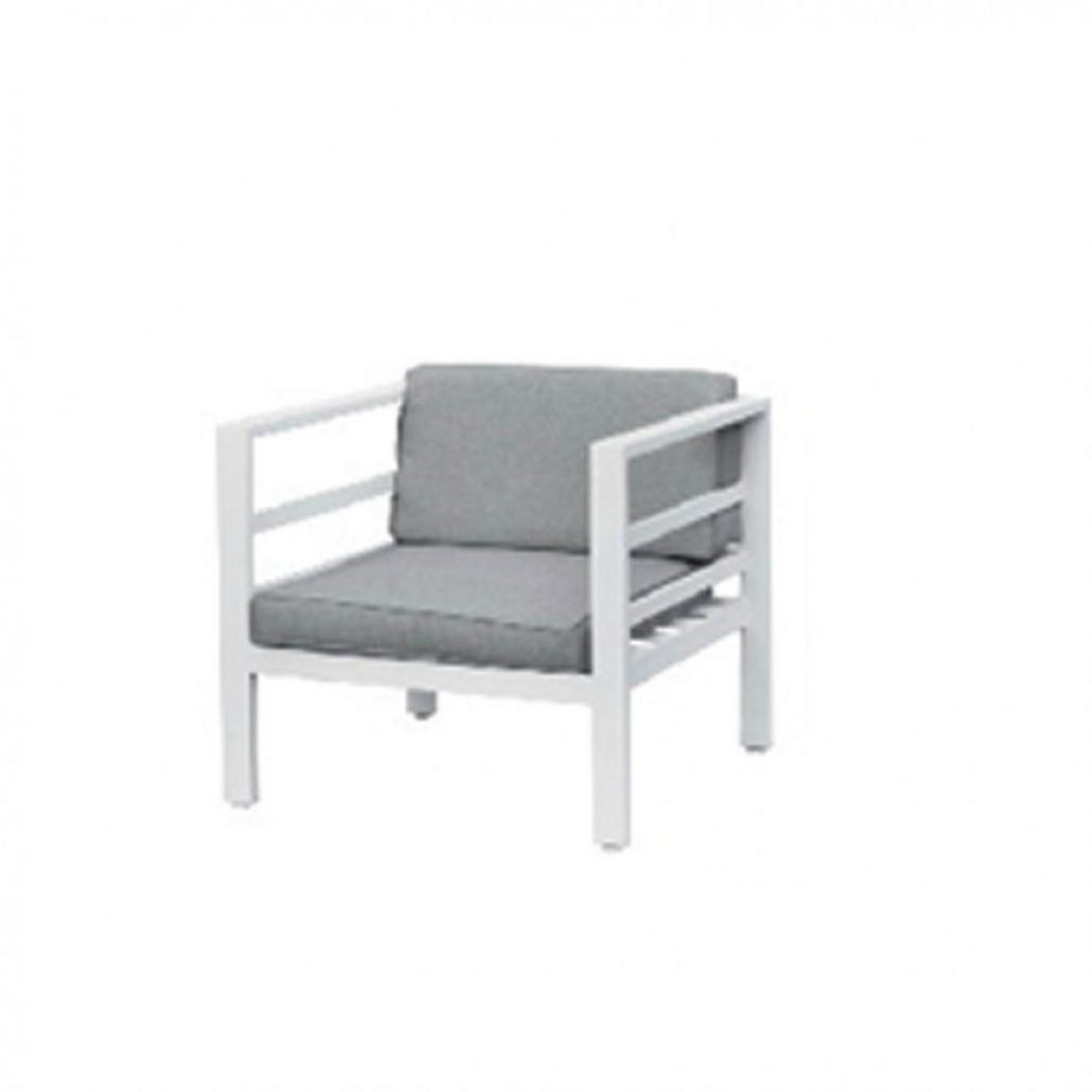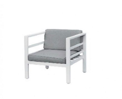 - Weißes Aluminiumgestell mit grauen Auflagen