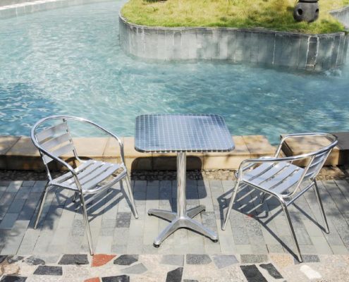 Das robuste Gartenset aus Aluminium, verleiht der Umgebung einen Bistro-Style und ist zugleich Wetterfest.