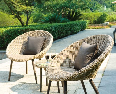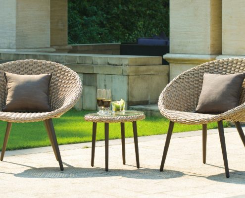 Dieses komfortable und gemütliche Zweisitzer-Set mit passendem Beistelltisch eignet sich perfekt für die sonnigen Tage draußen auf der Terrasse!