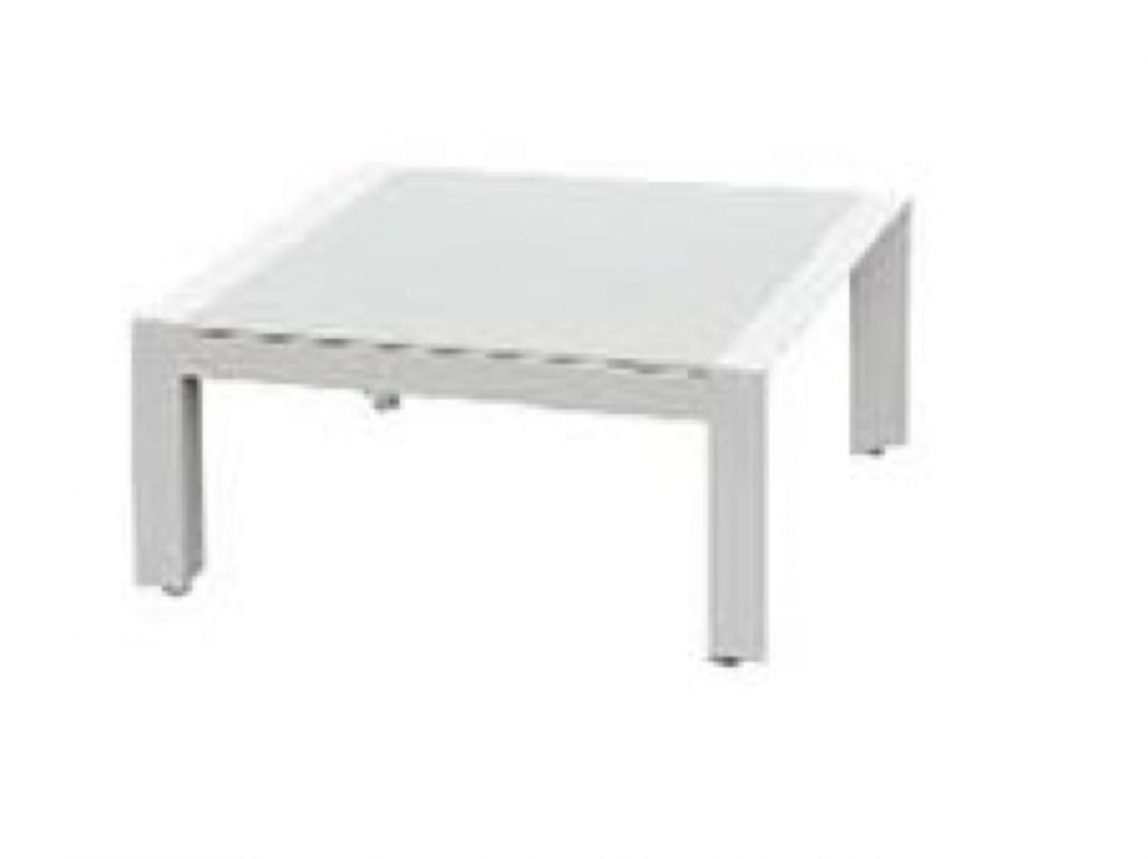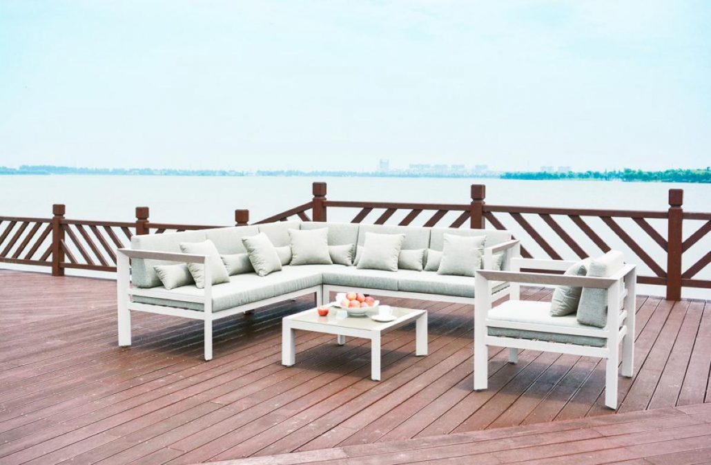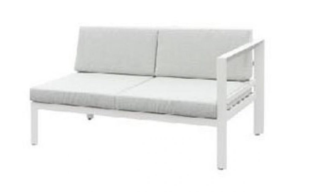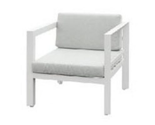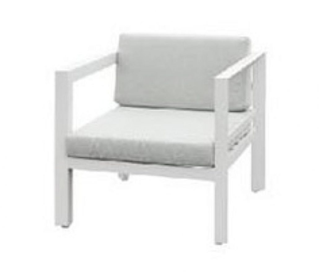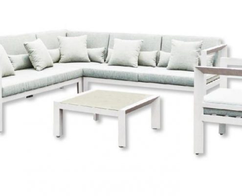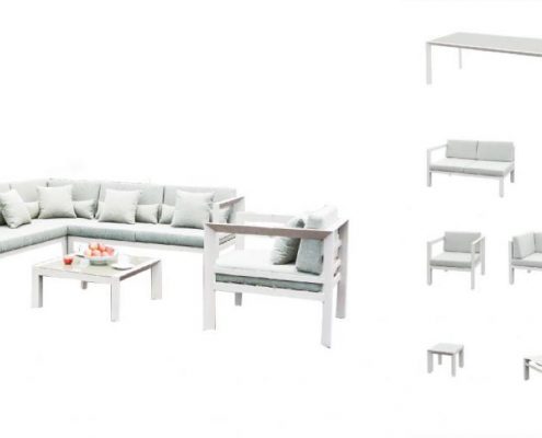 - Weißes Aluminiumgestell mit grauen Auflagen