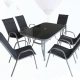 Dieses 5-teilige Gartenset umfasst 4 klappbare Stühle und einen klappbaren Tisch. Die Kombination aus dem schwarzen Tisch und den grünen Stühlen bringen einen Kontrast und „pepp“ in das Gartenset.