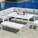 Durch die Verarbeitung aus Aluminium ist dieses Gartenmöbelset wetterbeständig.