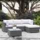 Das 4-teilige Gartenset „Cleveland“ umfasst zwei Sessel, eine Sitzbank und einen Beistelltisch.