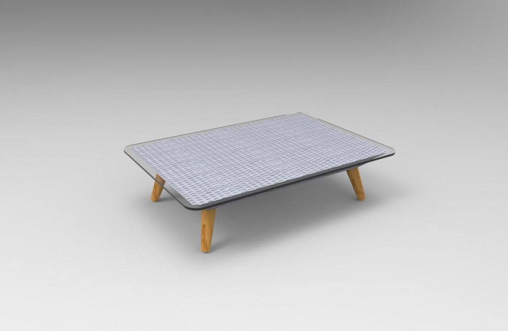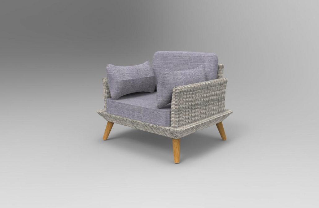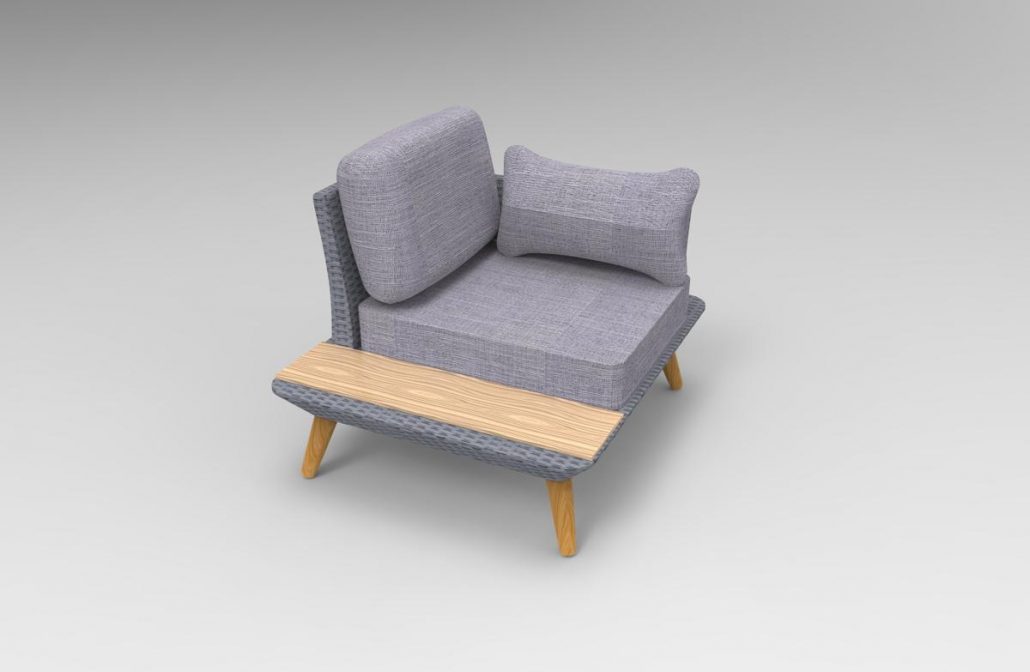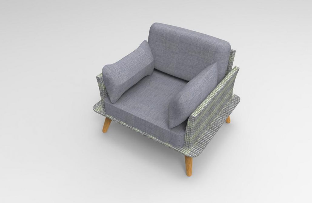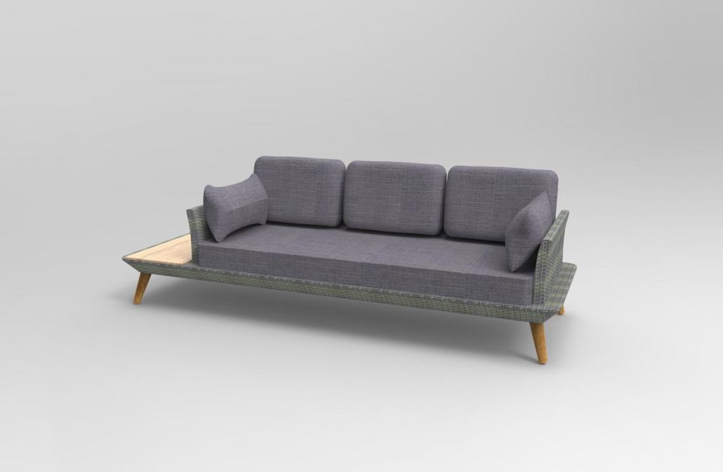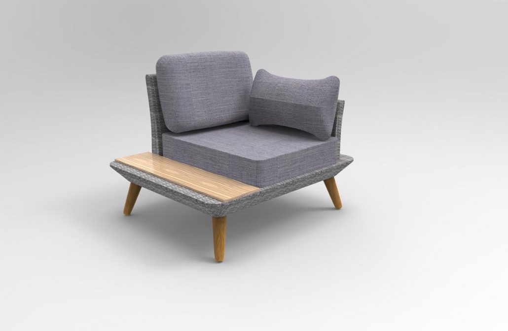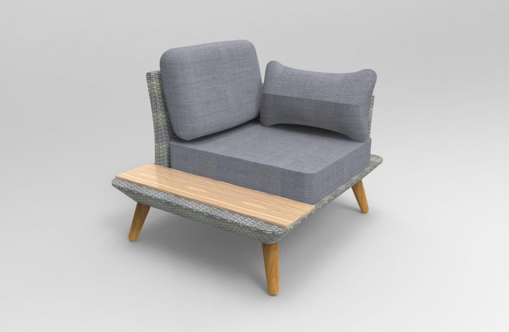 Die Besonderheit hierbei ist der Materialmix. Es besteht aus Polyrattan, modernen grauen Auflagen und einer Holzoptik, die jeweils am Sofa und am Ecksofa als Beistelltisch fungieren. Ebenso spiegelt sich dies auch im Tisch wieder. Die Beine der Möbel sind ebenfalls in einer Holzoptik verarbeitet worden.
