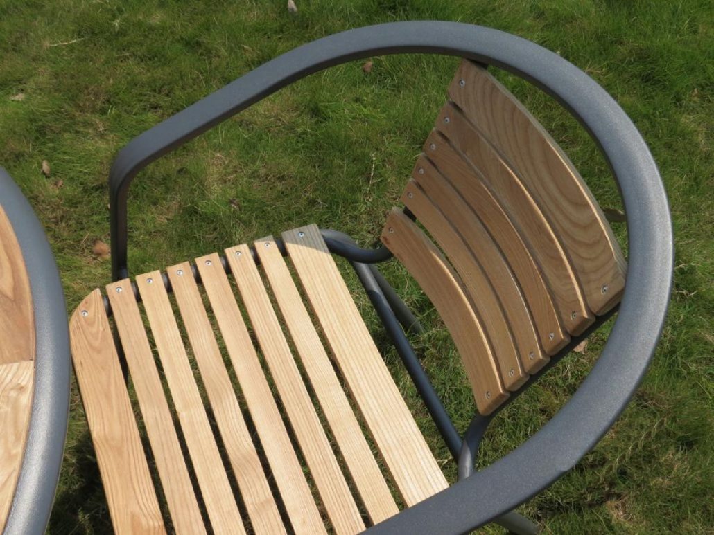 Das harmonische Gartenset „Regensburg“ aus schwarzem Aluminium und Esche verleiht jedem Garten einen neuen Glanz.