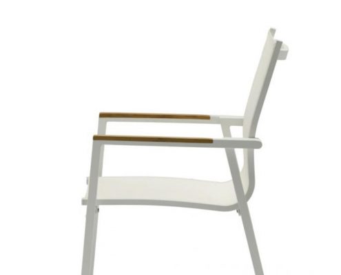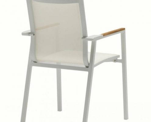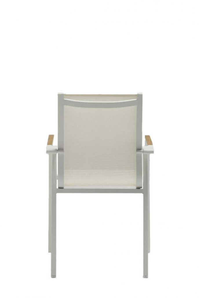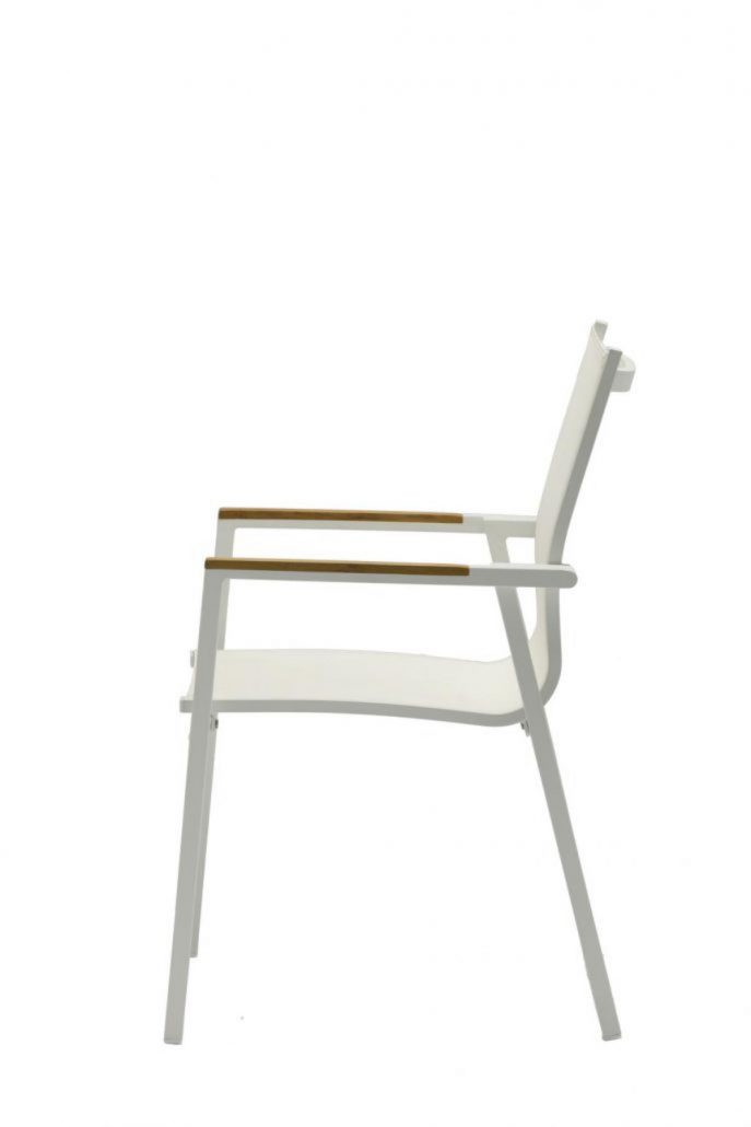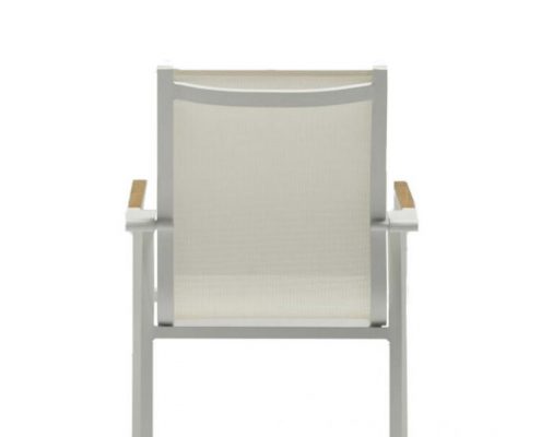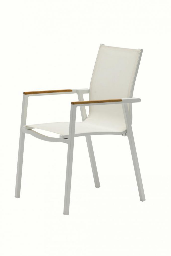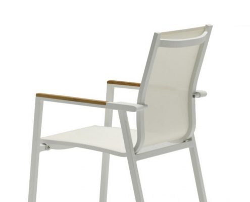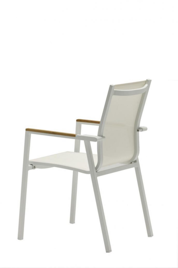 - Weiße Stühle aus Textilene und ein Aluminiumrahmen