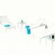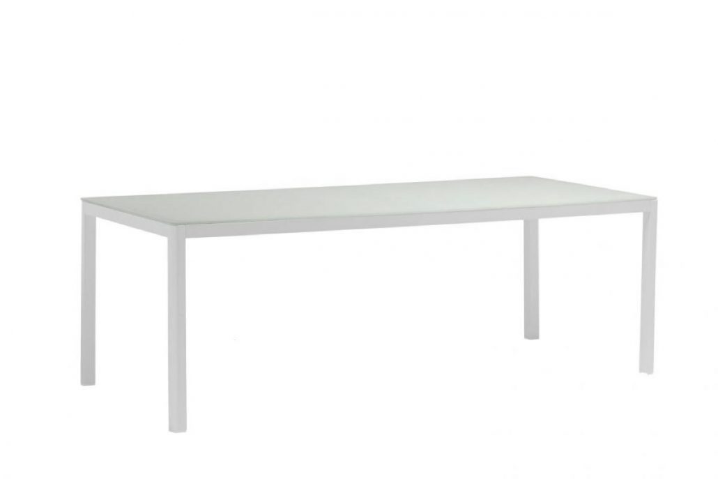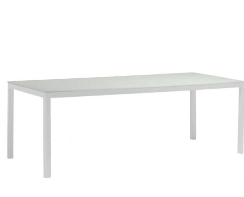 - Weißer rechteckiger Tisch mit einem Aluminiumrahmen