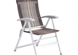 - Weiße Stühle aus Textilene und ein Aluminiumrahmen