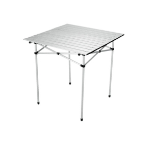 Quadratischer Campingtisch, der zum Lagern leicht zusammengeklappt werden kann.