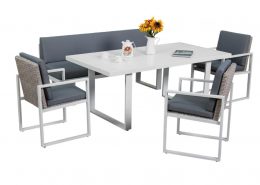 Unsere EcoPlan Serie ist modern und umfasst eine Kombination aus Materialen die für das Outdoor Living gemacht sind. Diese Materialen sind Stahl, Aluminium, Teakholz, Seil, Polyrattan, Glas und wasserfesten Sitzauflagen. Unsere Möbel zeichnen ein einfaches, relaxtes und komfortables Outdoor Living aus.